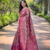 Be the first to review “Women’s Luxurious Pista Green & Pink Art Silk Saree with Intricate Leaf Weave & Broad Zari Border – Ideal for Festive & Wedding Occasions”